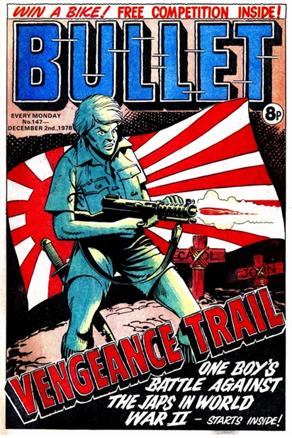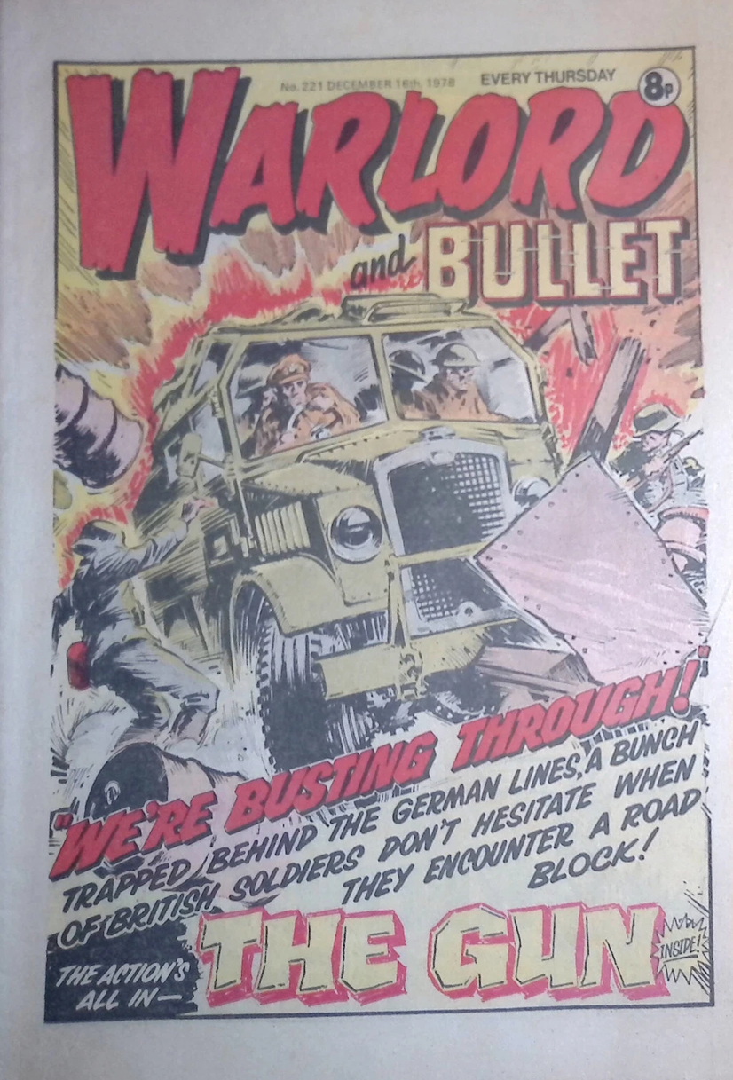 Bullet issue number one appeared on 14th February 1976 and included a free gift of ‘Secret Sign Ring’. Stories in the first issue were ‘Smasher’, ‘3 Men in a Jeep’, ‘Twisty’, ‘Vic’s Vengeance’, ‘Flight into the Unknown’, ‘Survivor’ and ‘Fireball’. After 147 issues, Bullet merged with Warlord.