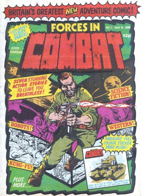 Forces In Combat comic reprinted US Marvel strips. The comic ran for 37 issues before merging with Future Tense comic. Characters in the first issue included Kull, Machine Man, Nick Fury, Rawhide Kid, ROM – The Spaceknight, Master of Kung Fu Shang-Chi and Wulf the Briton.