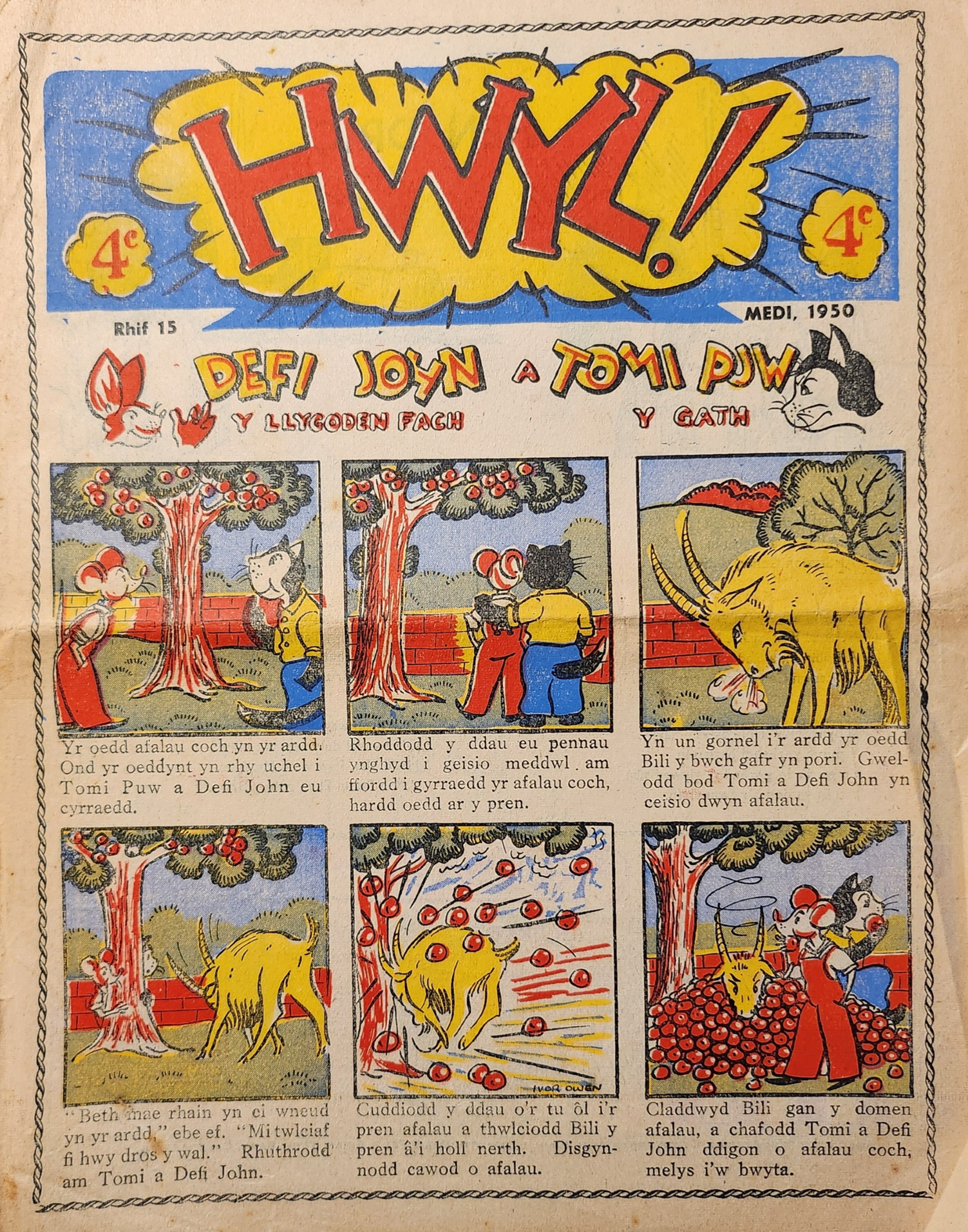 Believed to be the first comic to be published in the Welsh language.  Hwyl! was the brainchild of Merionethshire school headmaster David John Williams. Hwyl is the welsh word for fun.