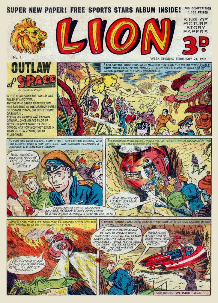 The first issue also saw the introduction of ‘Captain Condor’ by Frank S Pepper and Ronald Forbes. ‘Captain Condor’ – ‘Outlaw of Space’ was presumably IPC’s solution to the popularity of The Eagle’s Dan Dare. In the year 3000 Earth is ruled by a dictator and Captain Condor is a imprisoned on Titan for refusing to transport slaves. ‘Captain Condor’ and his friend Pete planned an escape.