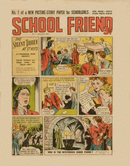 Not to be confused with The School Friend story paper which ran between 1929 and 1929. School Friend was a girl’s comic. The first issue included The Silent Three at St. Kitt’s, Gay Cavalier, Jill Crusoe, Denise and The Scarab Ring, Terry Brent – Detective and Dilly Dream.