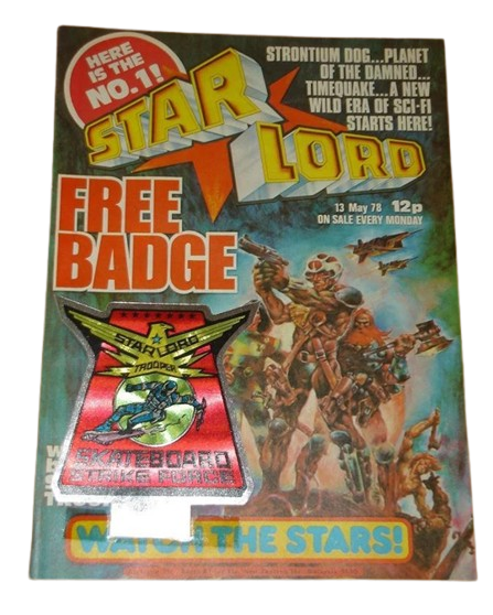The first issue of Starlord was dated 13th May 1978 and came with a free gift of a Starlord Trooper badge. The Starlord Trooper badge was introduced in six different versions, which were ‘Tank Commander’, ‘Skateboard Strike Force’, ‘Mek War Controller Robot Regiment’, ‘Laser Specialist’, ‘Time Warden’ and ‘Pilot’. Starlord was produced using high quality paper and cost twelve pence, which at the time was 40 to 50% more expensive than its competitors. Starlord only lasted 22 issues but it was 22 issues of pure quality, not only its luxurious paper but also its fantastic stories.